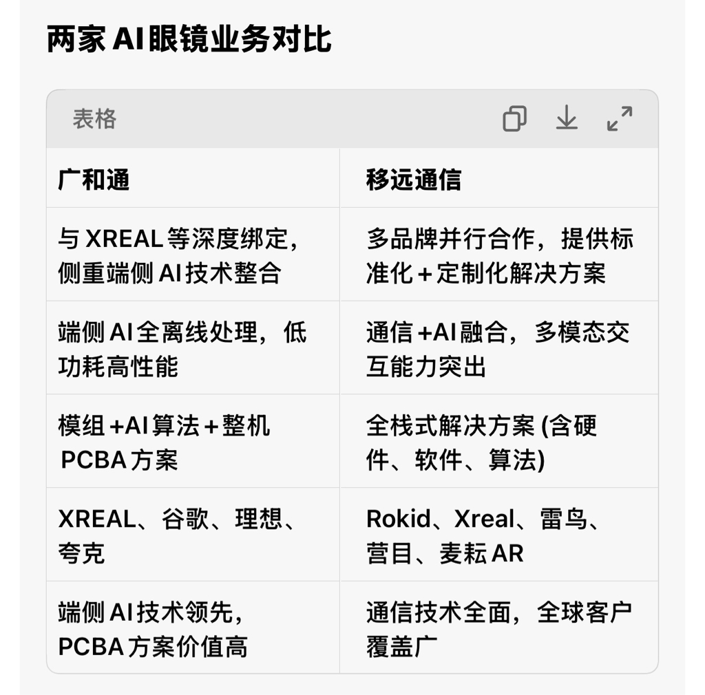 广和通和移远通信在AI眼镜谁最有前景:答案是广和通最有前景,2大最强的大模型公司都给广和通拿下了,就是阿里巴巴和谷歌