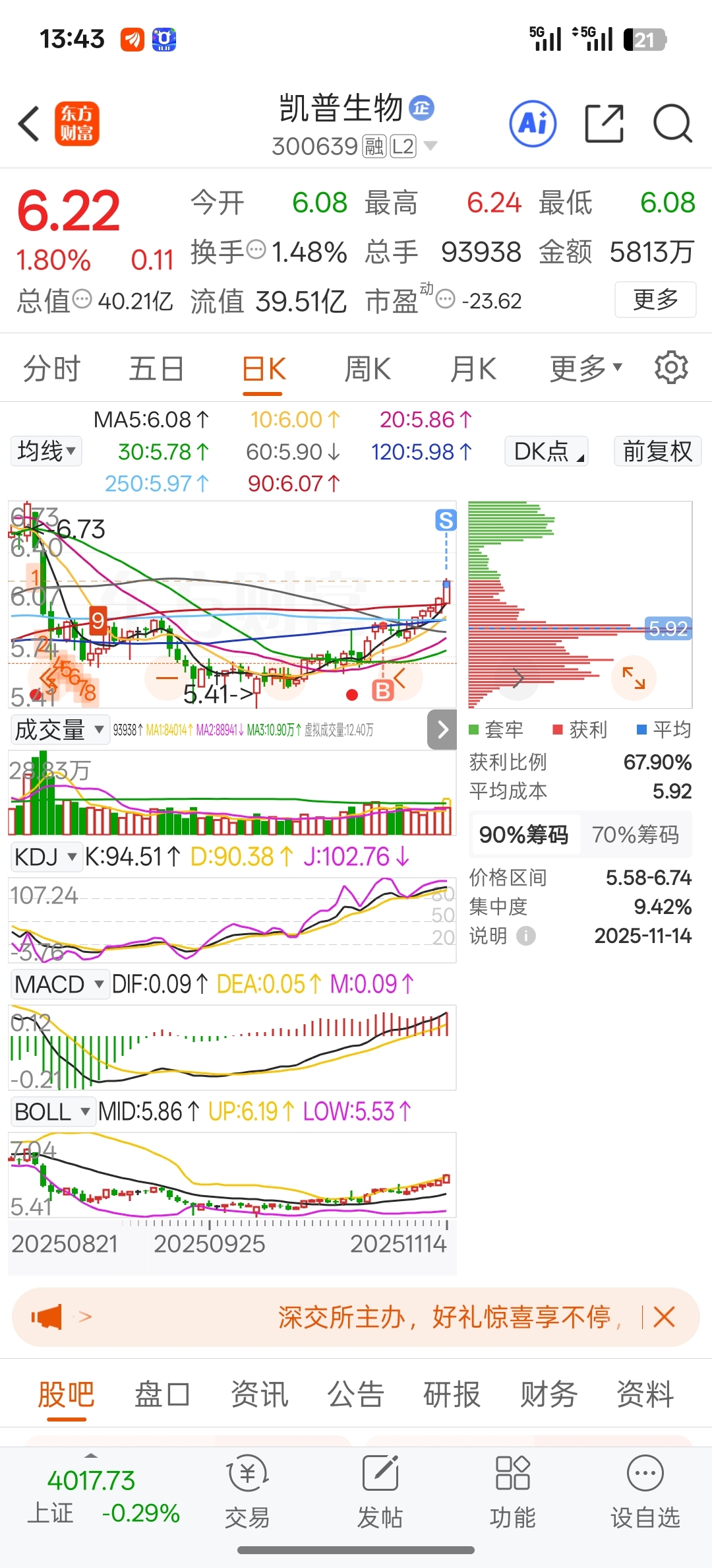 $凯普生物(SZ300639)$ 我卖了,你可以起飞了