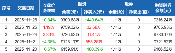 凯普生物:融资净偿还449.64万元,融资余额9309.68万元(11-26)