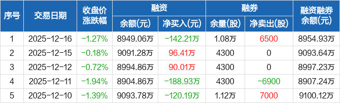 凯普生物:融资净偿还142.21万元,融资余额8949.06万元(12-16)