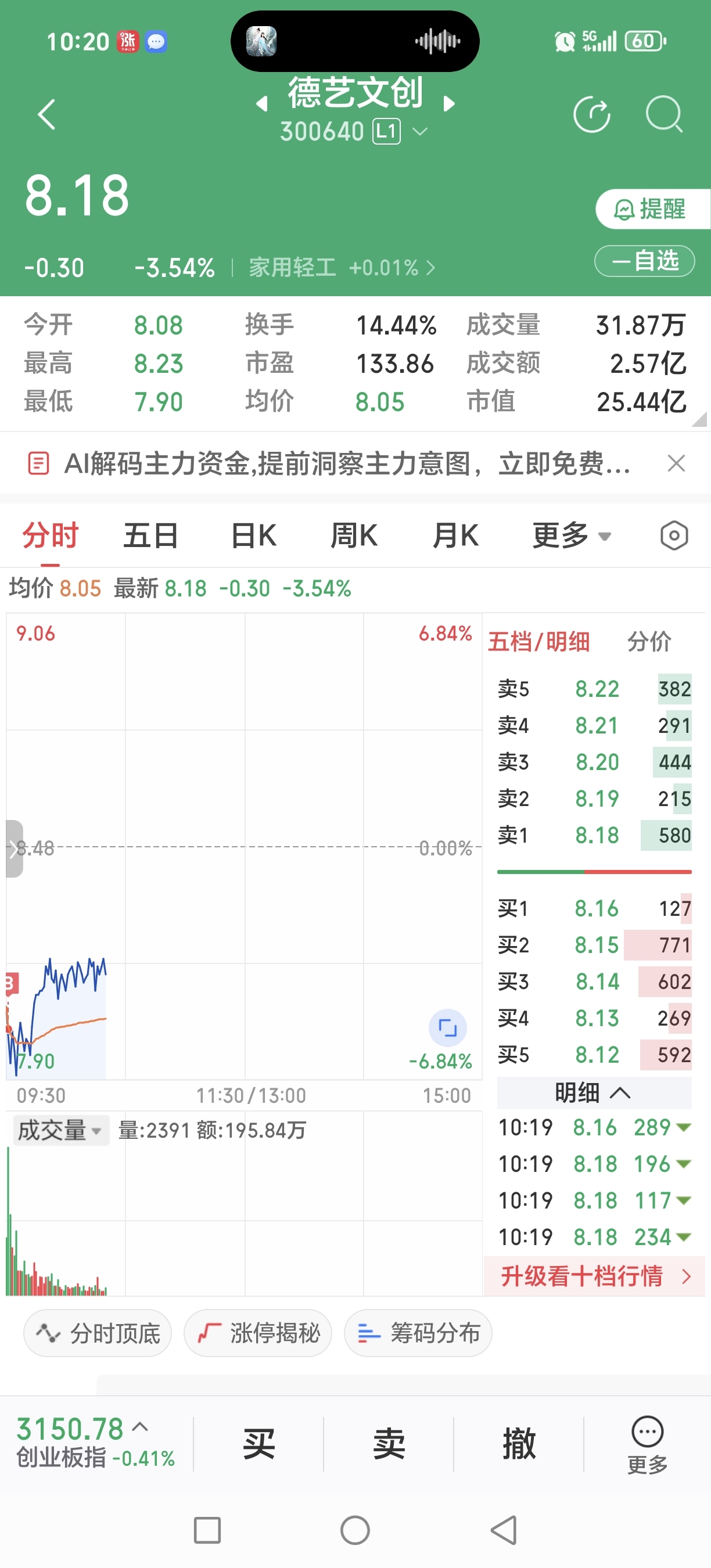 $德艺文创(SZ300640)$ 你们不敢买的票,请交给我!只做先头兵,不做马后炮!我是技术派,我为自己代言!
