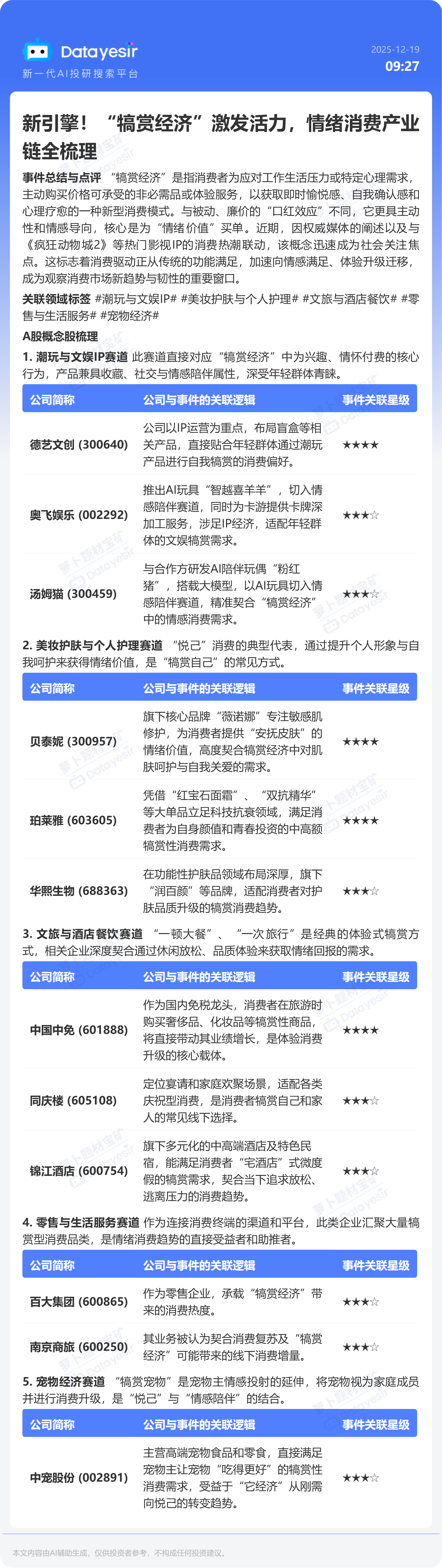 新引擎! “犒赏经济” 激发活力,情绪消费产业链全梳理