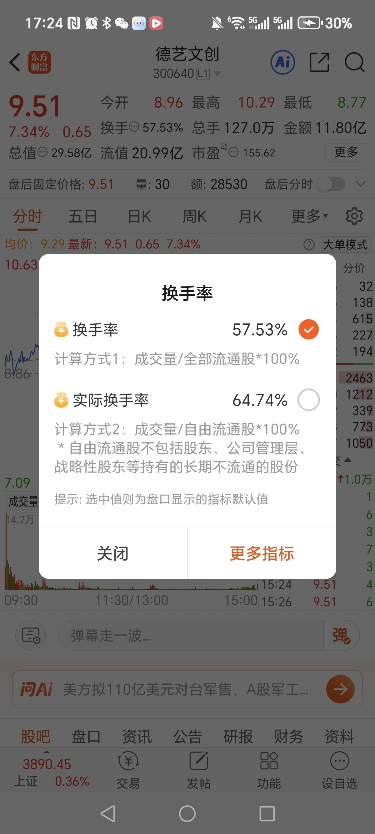 $德艺文创(SZ300640)$ 实际换手率那么大搞不懂