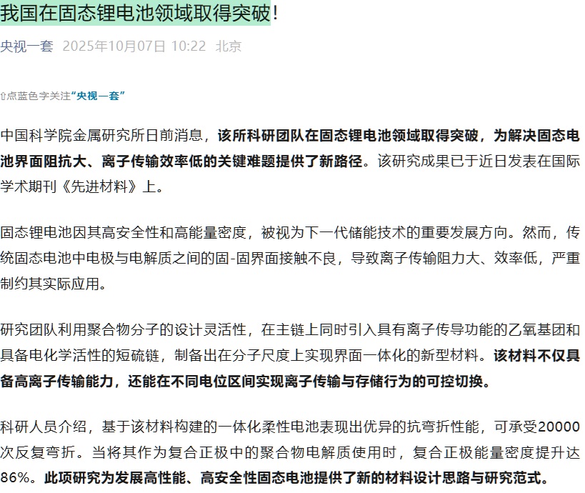 央视:我国在固态锂电池领域取得突破!利好300641正丹股份