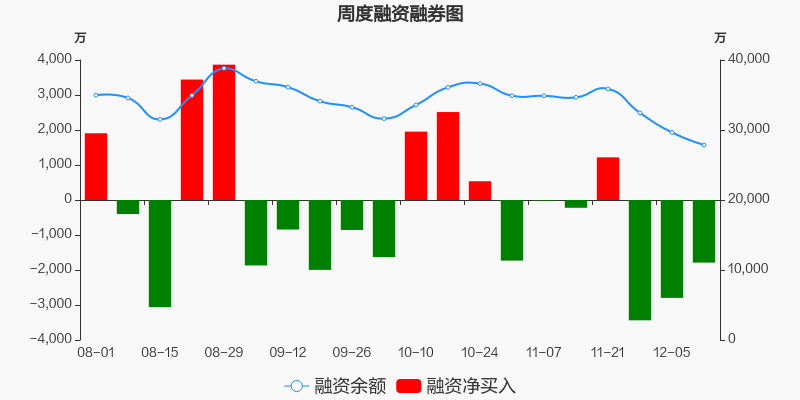 正丹股份本周(2025/12/08-2025/12/12)累计跌幅达0.71%,截至12月12日最新股价报收18.19元。从增量上来看,12月8日至12月11日融资买入交易规模3041.54万元,融资偿还规模4830.4万元,期内融资净偿还1788.86万元。从存量上来看,截止12月14日,正丹股份融资融券余额2.79亿元,其中融资余额规模2.79亿元,融券余额规模88.04万元。