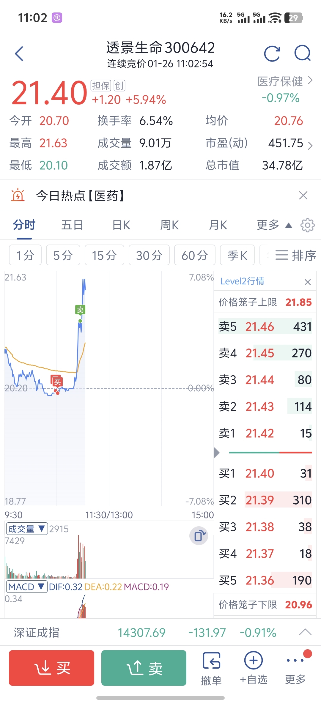 $透景生命(SZ300642)$ 还是一如既往的一卖就飞