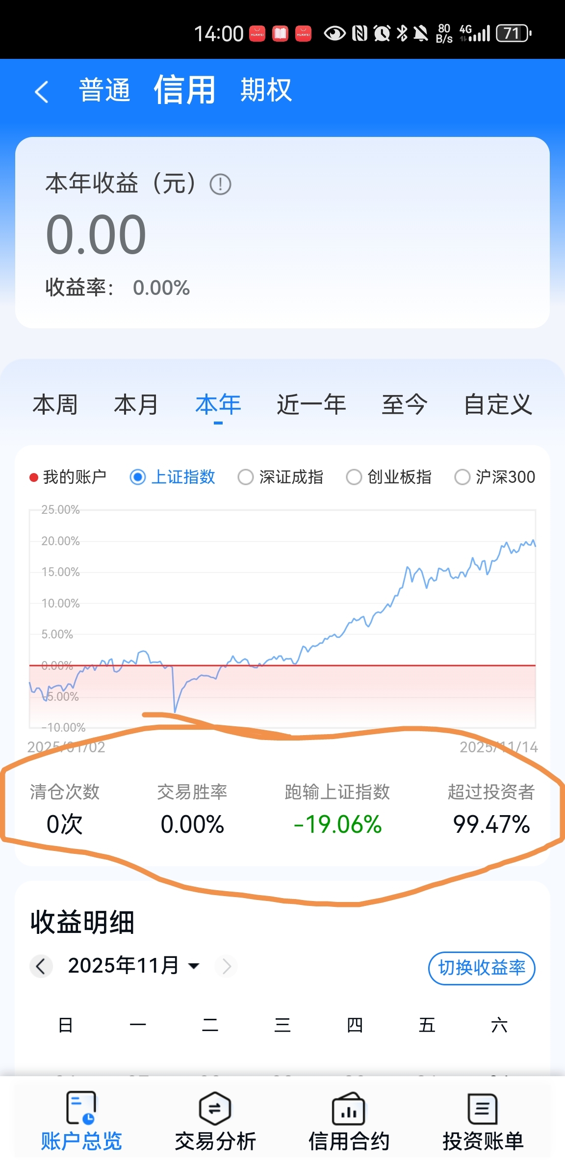 $星云股份(SZ300648)$ 一个融资账号没用,一年没动过,竟然超过99%的人,也就是说99%用信用账号融资炒股的都是亏钱的