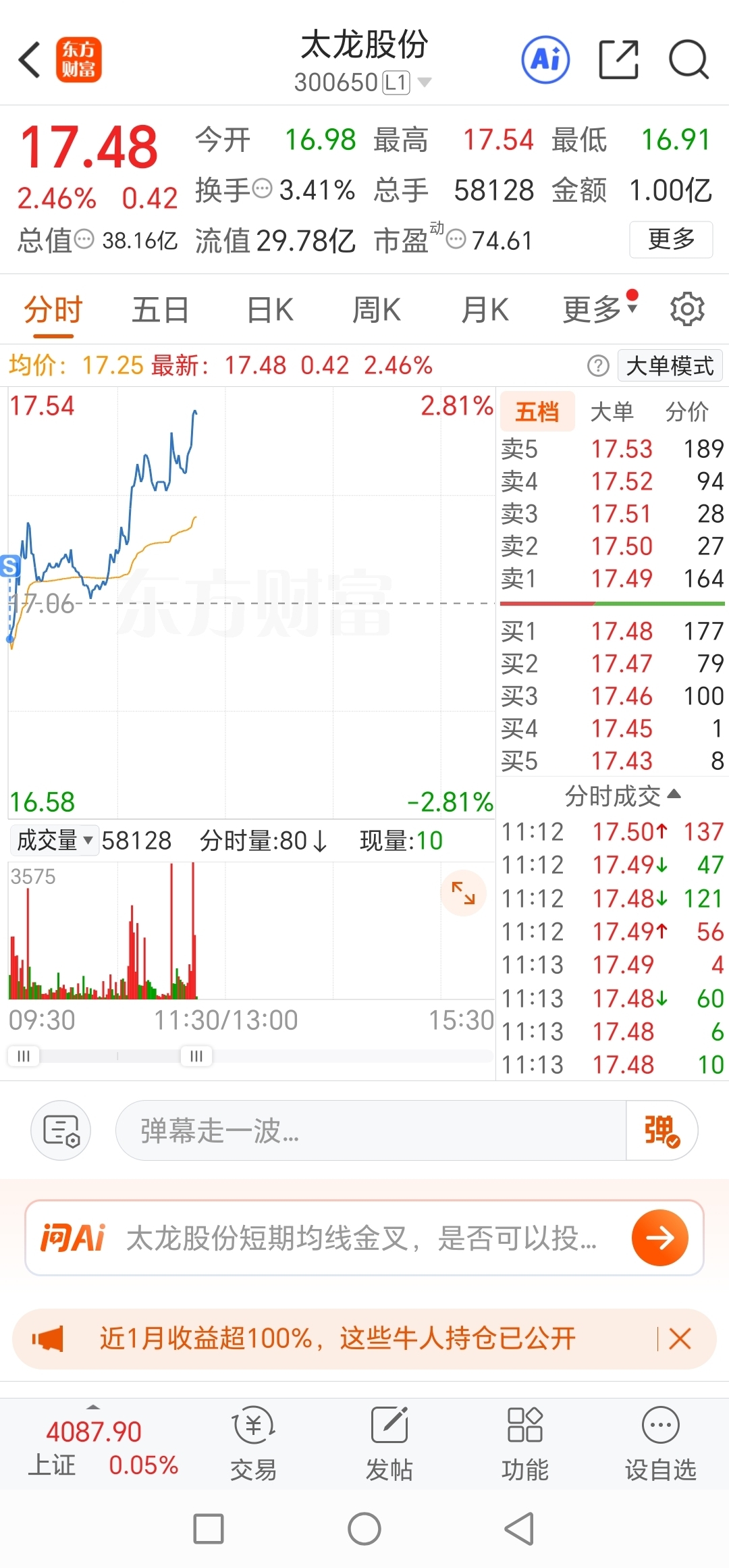 $太龙股份(SZ300650)$ 主力监控我了吧?卖后你拉起来了!