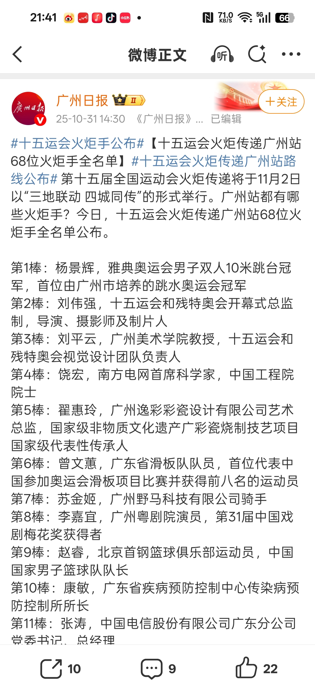 周日传火炬了
