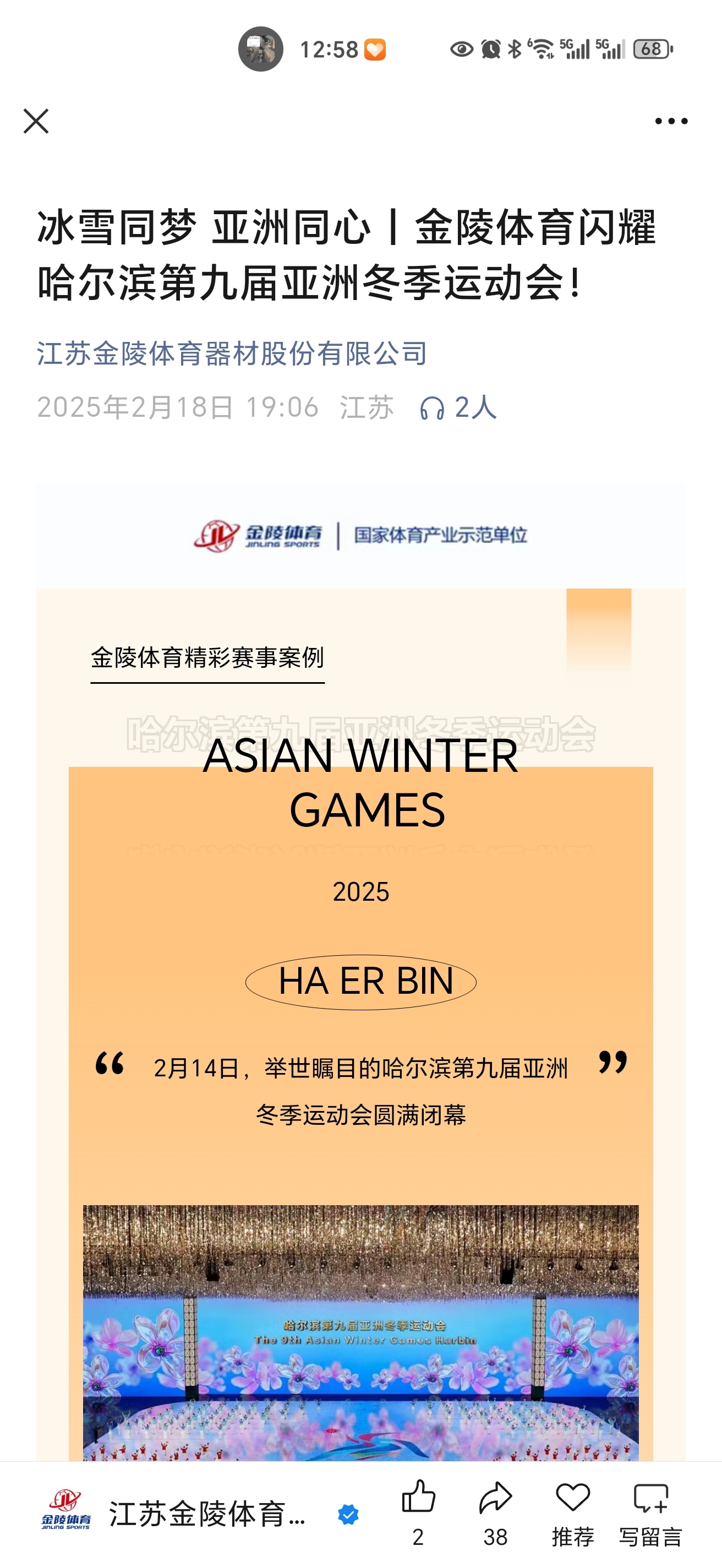 金陵体育:作为冬季运动会赛事重要的技术支持单位,为自由式滑雪空中技巧、冬季两项、短道速滑等11个项目提供了计时记分、成绩处理、仲裁录像、竞赛视频等服务$金陵体育(SZ300651)$ 冰雪经济