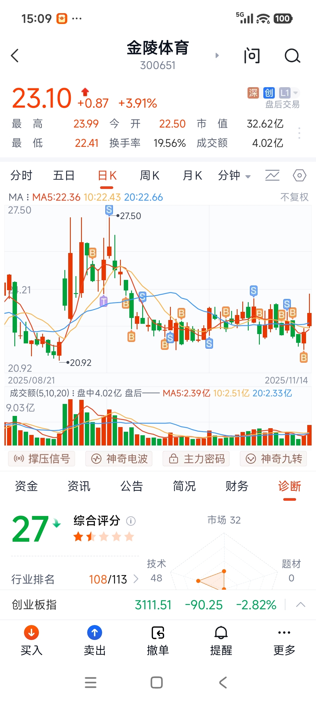 $金陵体育(SZ300651)$ 一直跟着主力混,庄家吃肉我喝汤。