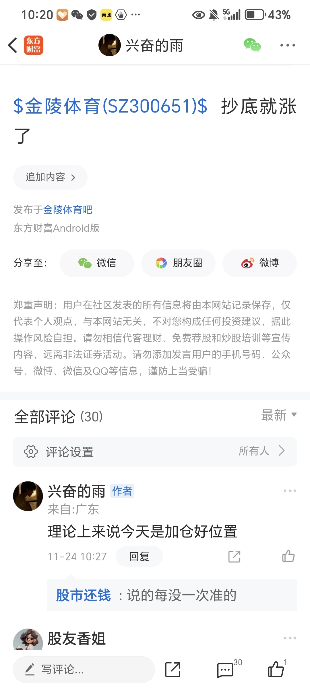 $金陵体育(SZ300651)$ 那个说我的人今天验证是不是最佳加仓位置?
