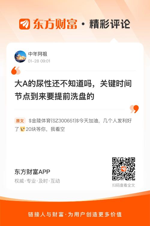 温馨提示: 1.根据《证券法》规定,禁止编造、传播虚假信息或者误导性信息,扰乱证券市场;2.用户在本社区发表的所有资料、言论等仅代表个人观点,与本网站立场无关,不对您构成任何投资建议。用户应基于自己的独立判断,自行决定证券投资并承担相应风险。《东方财富社区管理规定》