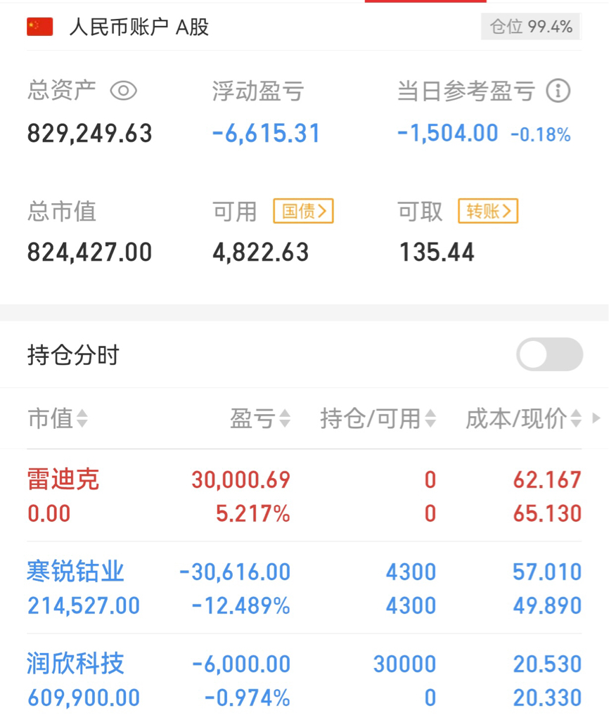 35w实盘日志第一百零六天今作记录雷迪克获利出局韩锐钴业持有不变润欣科技新仓