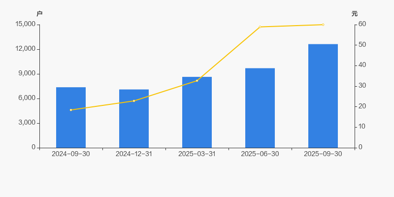 截至2025年9月30日,公司最新总股本为1.33亿股,其中流通股本为1.2亿股。户均持有流通股数量由上期的1.24万股下降至9482股,户均流通市值56.86万元。
