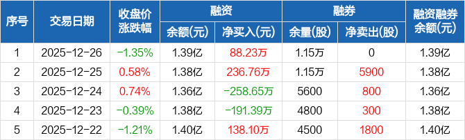 正海生物:融资净买入88.23万元,融资余额1.39亿元(12-26)