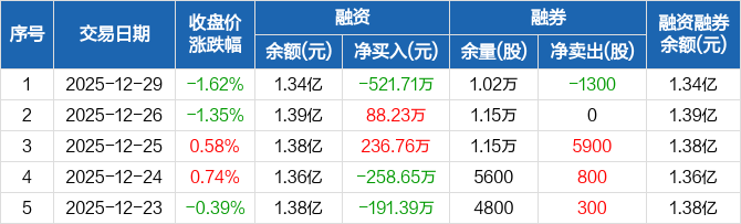 正海生物:融资净偿还521.71万元,融资余额1.34亿元(12-29)