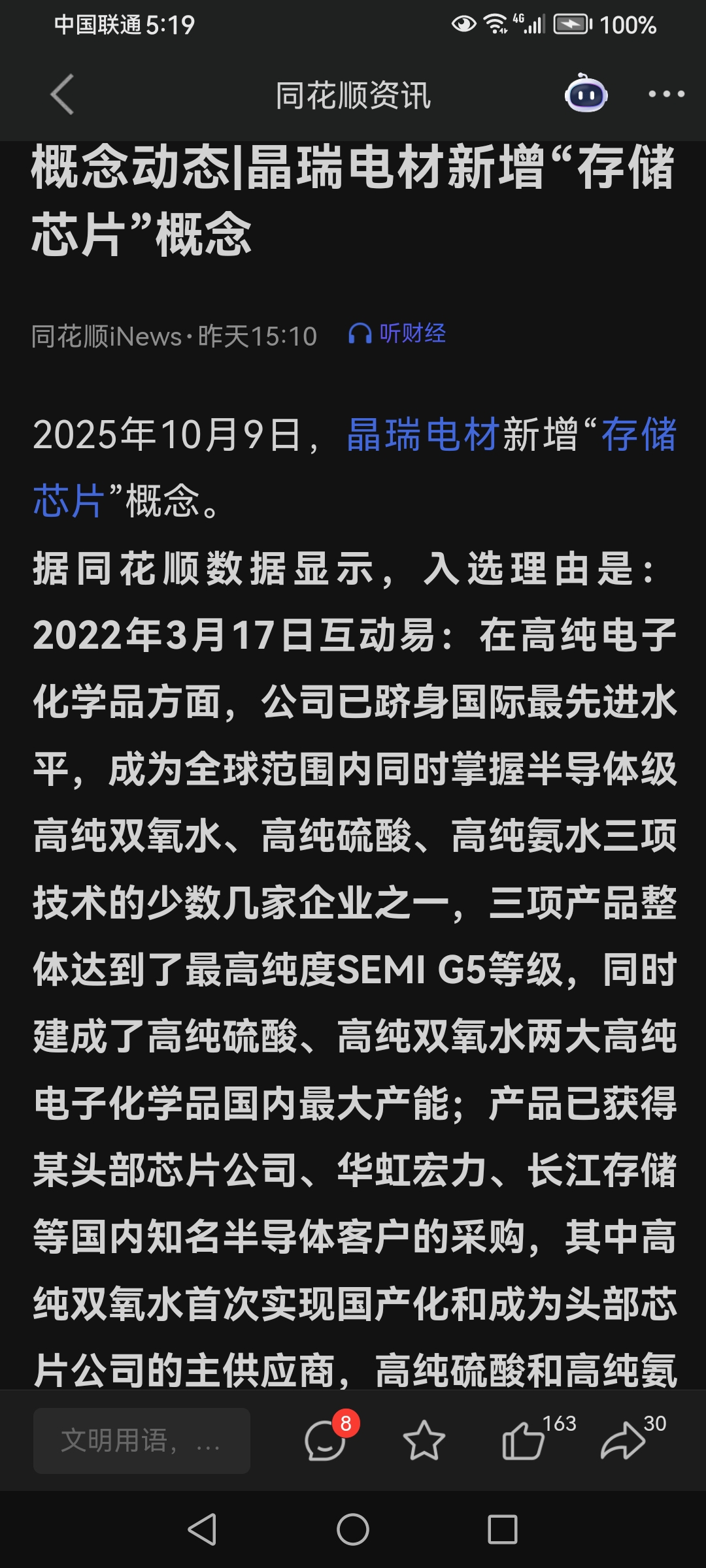$晶瑞电材(SZ300655)$ 同花顺新增储存芯片概念