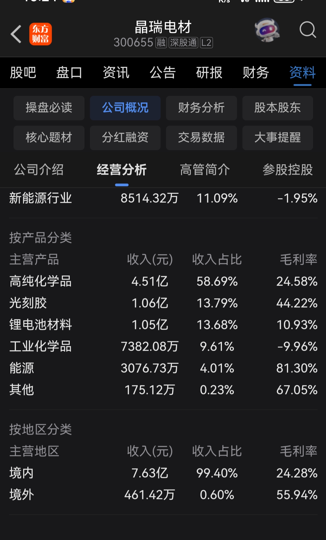 $晶瑞电材(SZ300655)$ 周一开盘要抢筹了,99.4%的销量都在国内,关税没影响,因自主可控,需求要大幅提高,超级利好,半导体超纯品要提价,光刻胶也要放量了。