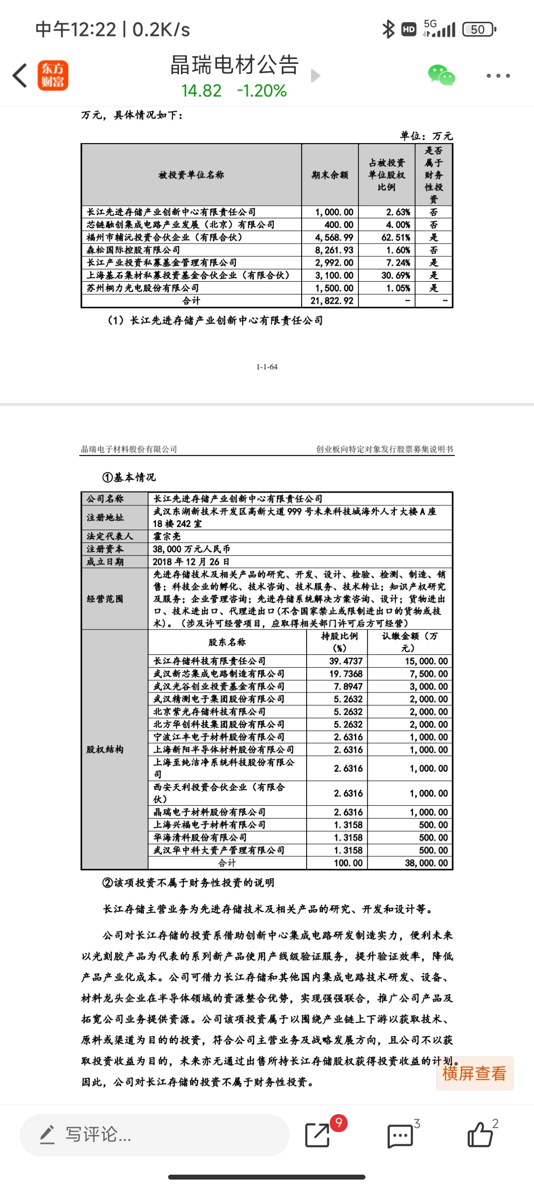 $晶瑞电材(SZ300655)$ 今天上涨的逻辑应该是持有长江存储的股权