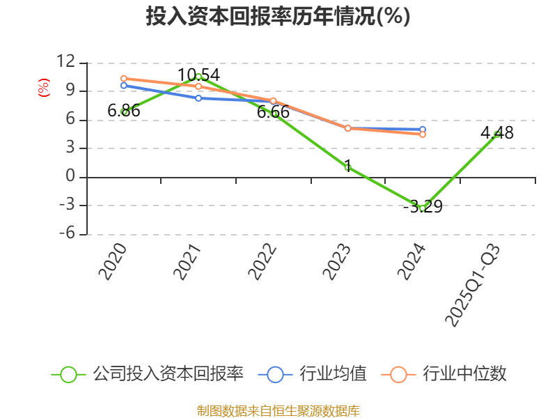盈利能力方面, 2025年前三季度公司加权平均净资产收益率为5.01%,同比上升4.98个百分点。公司2025年前三季度投入资本回报率为4.48%,较上年同期上升3.99个百分点。