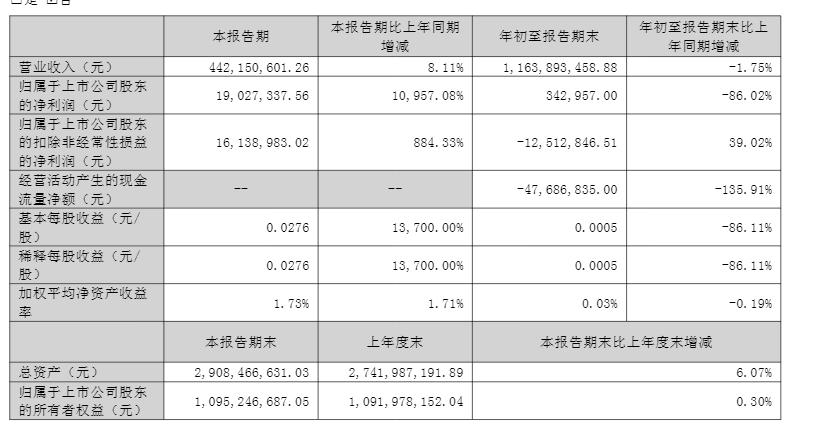 宜安科技公告称,三季度实现营业收入4.42亿元,同比增长8.11%,实现归母净利润1902.73万元,同比增长10957.08%,上年同期为17.21万元;实现扣非后归母净利润1613.9万元,上年同期为亏损205.77万元。不过,从前三季度总体业绩来看,宜安科技营收净利均有所下滑,前三季度实现营业收入11.64亿元,同比下降1.75%,实现归母净利润34.3万元,同比下滑86.02%。