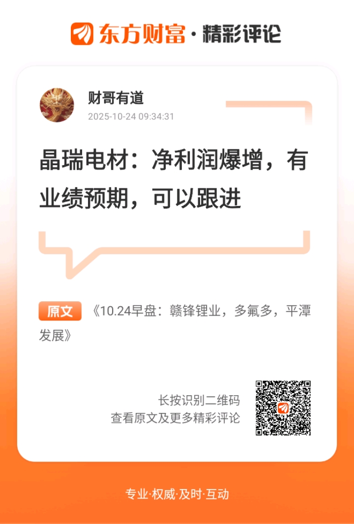 发表于 2025-10-24 10:11:42 东方财富Android版 发布于 广东
