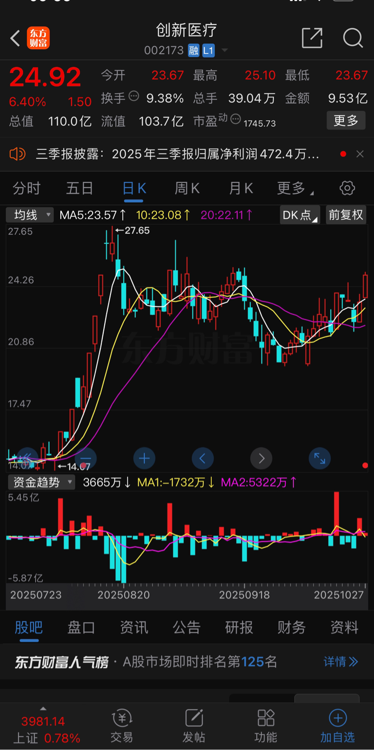 看看我10/23号共享低吸机会的创新医疗 002173两个交易日反攻10几个点够不够强,有没有把握住低吸机会的朋友,恭喜了