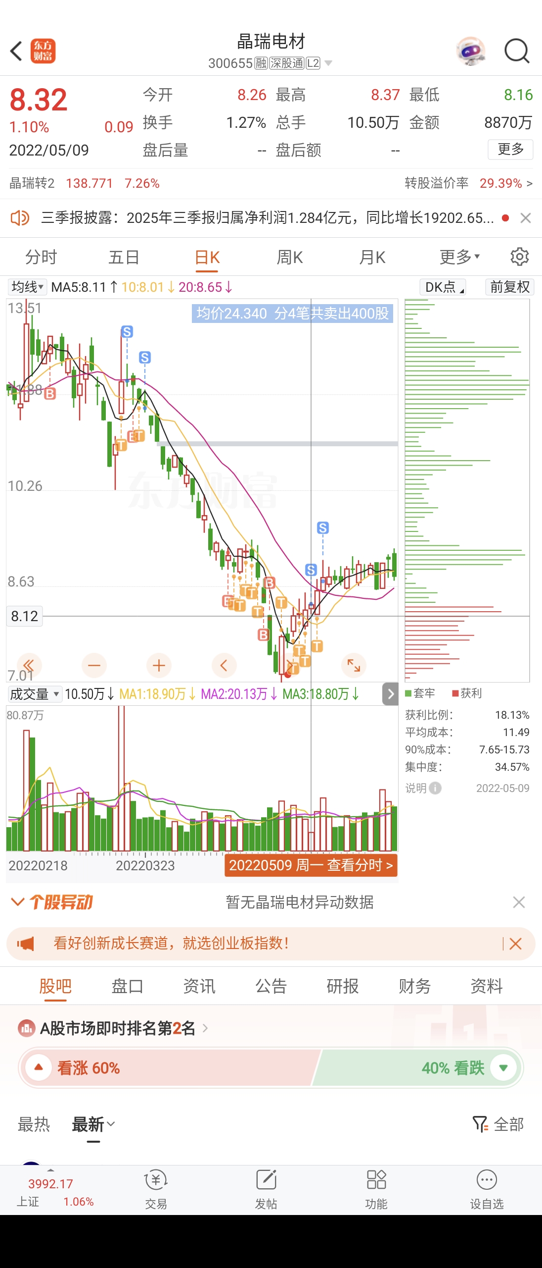 温馨提示: 1.根据《证券法》规定,禁止编造、传播虚假信息或者误导性信息,扰乱证券市场;2.用户在本社区发表的所有资料、言论等仅代表个人观点,与本网站立场无关,不对您构成任何投资建议。用户应基于自己的独立判断,自行决定证券投资并承担相应风险。《东方财富社区管理规定》