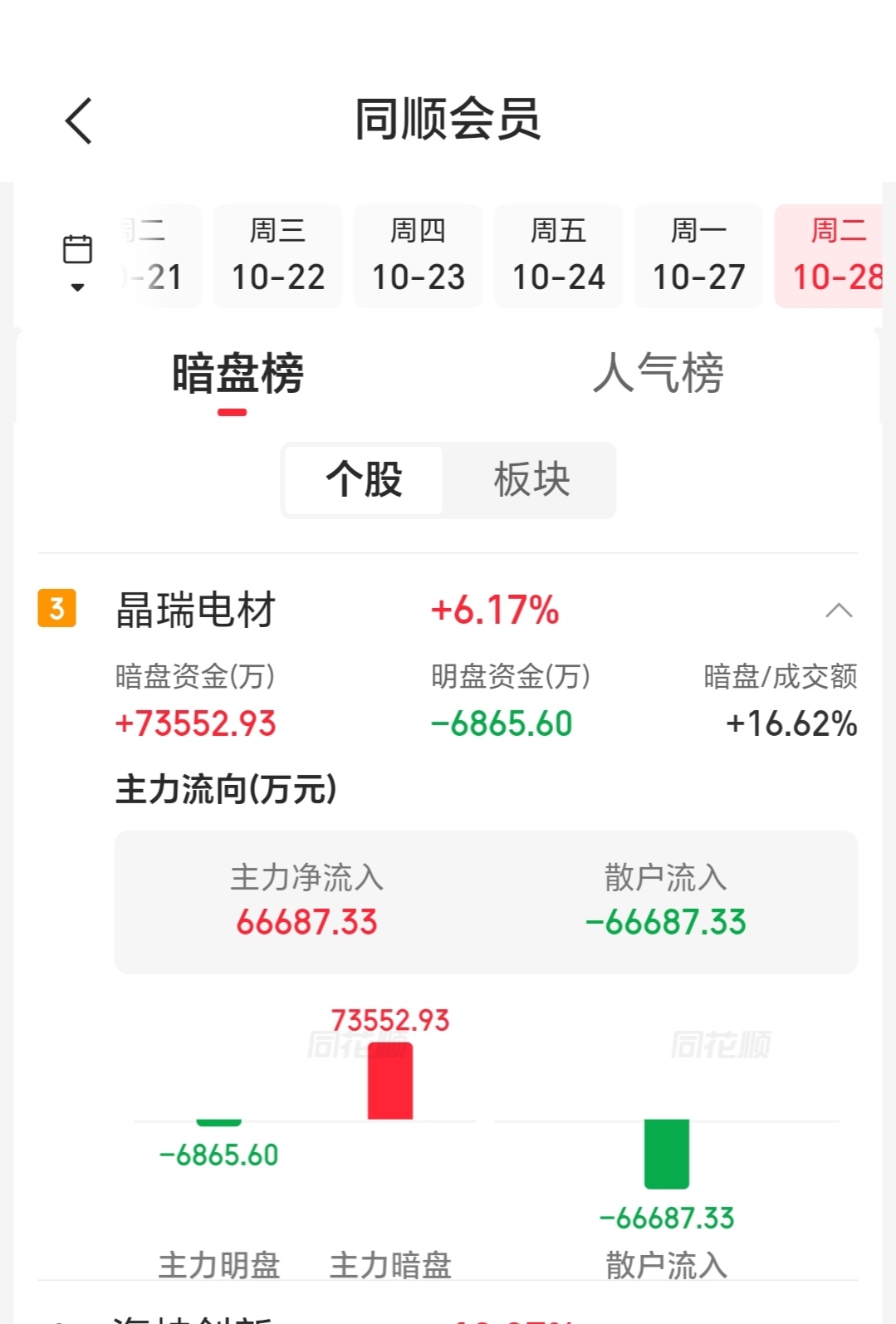 $晶瑞电材(SZ300655)$ 上午收盘明暗盘资金明细,拿住筹码,坐等收获!