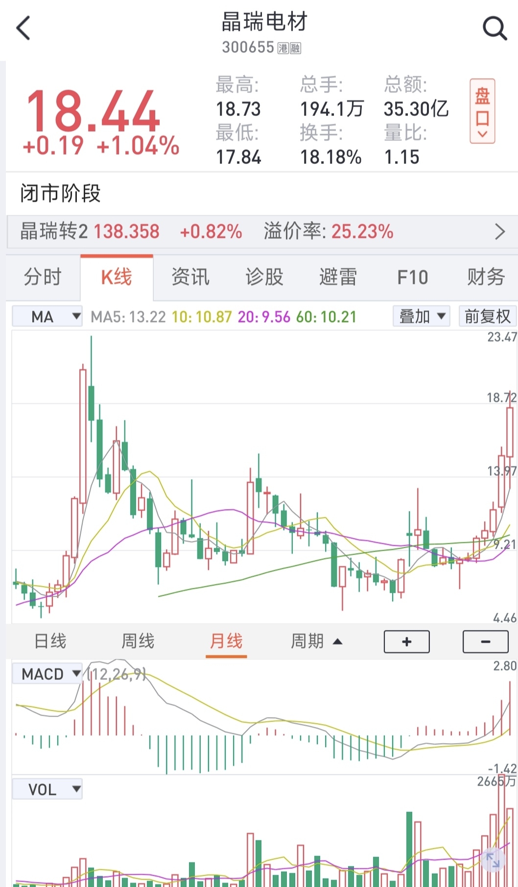 昨天买入晶瑞电材。原来持有天澳电子,但是觉得还是这个强。所以卖了天澳换成这个。希望今天不要让人失望。换股理由:看月线。