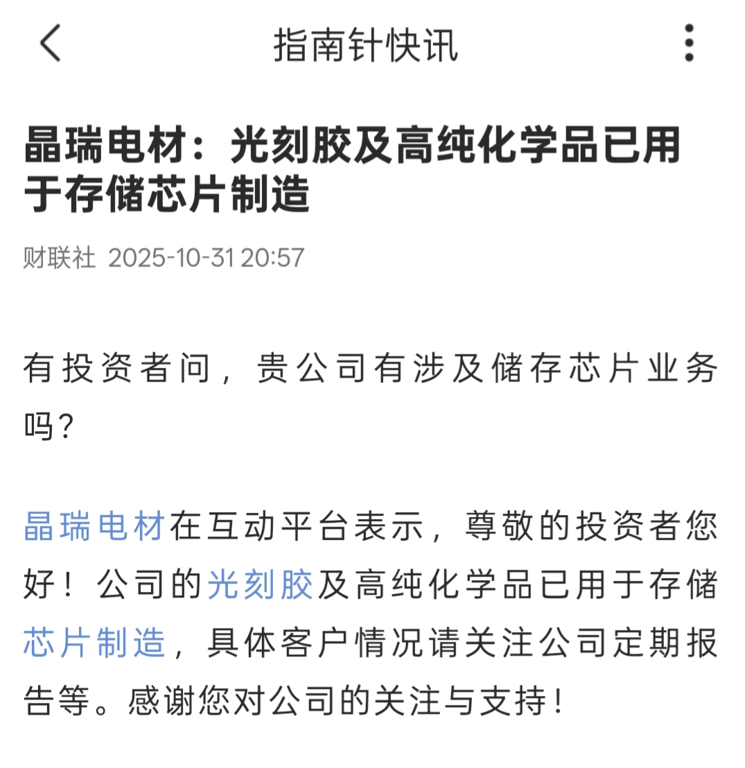 $晶瑞电材(SZ300655)$ 指南针快讯