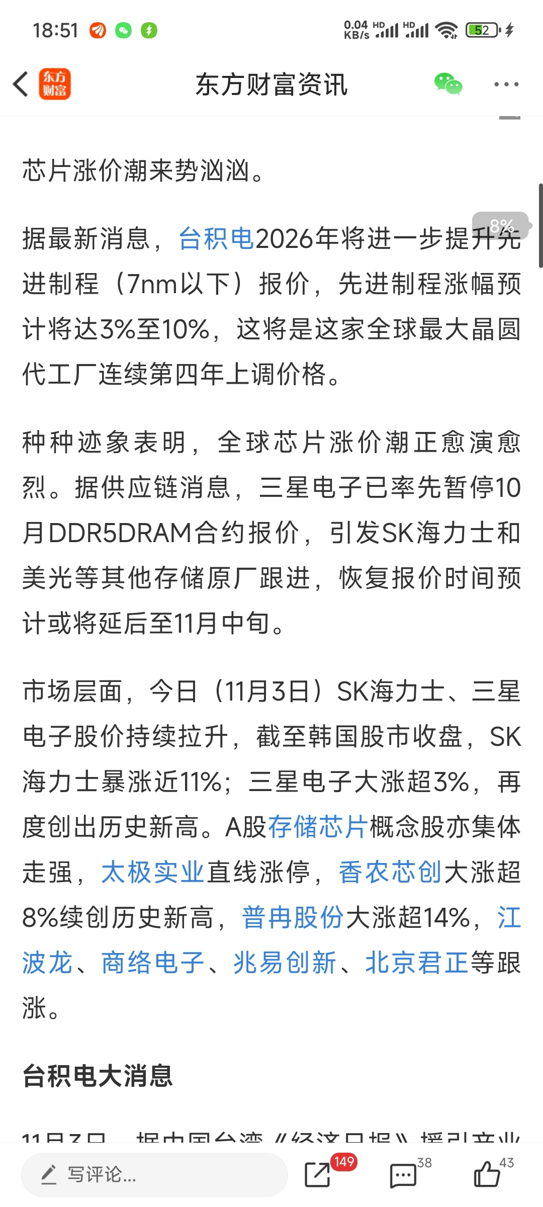 $晶瑞电材(SZ300655)$ 继续涨价,明天起飞,闪迪盘前已经起飞了