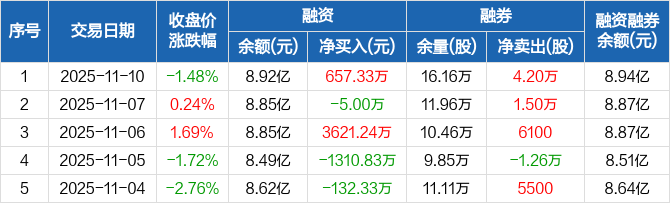 晶瑞电材:融资净买入657.33万元,融资余额8.92亿元(11-10)