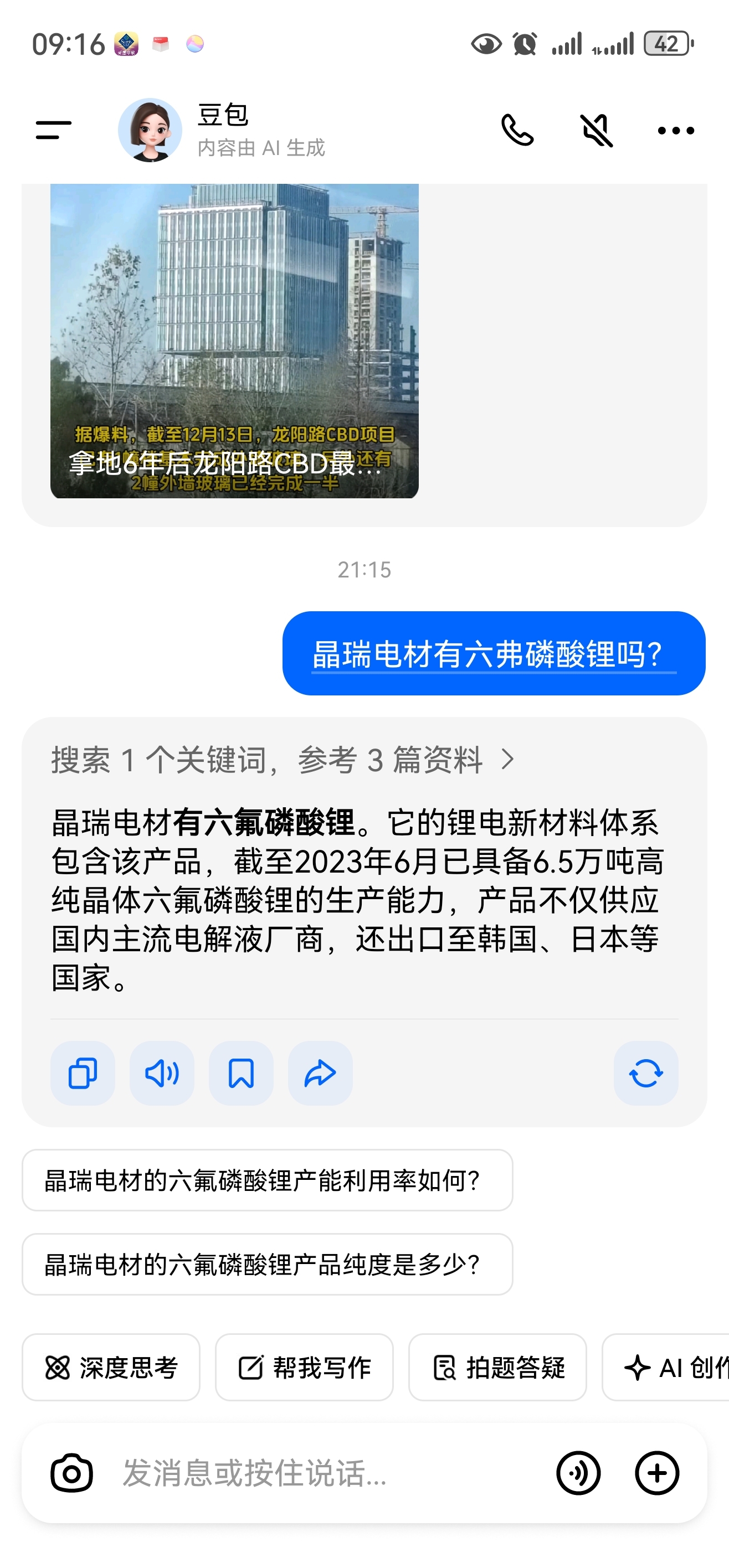 刚刚豆包了一下,原来晶瑞电材有六万吨六氟磷酸锂产量