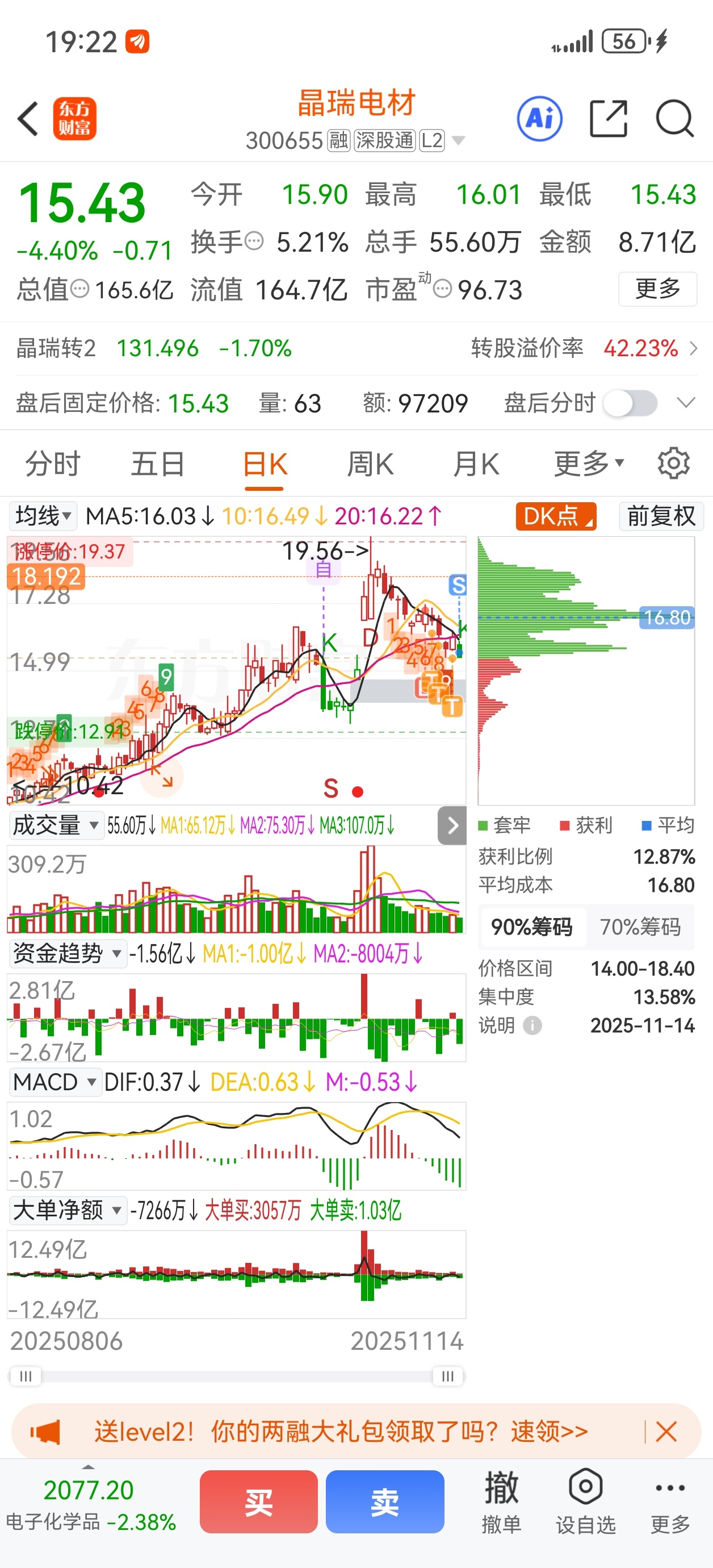 $晶瑞电材(SZ300655)$ 抄底失败,认输留个底仓吧!缩量下跌还得跌,全都在拼命跑