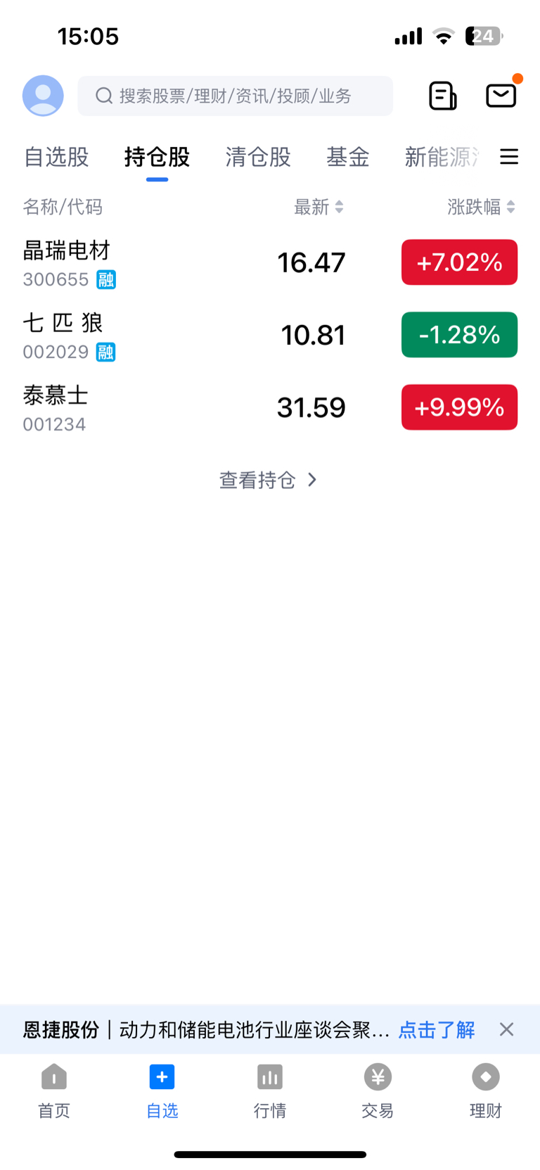 早上涨停出泰慕士,0轴买入晶瑞电材。但是我就是瞎买的,只是觉得它低位。后续晶锐上