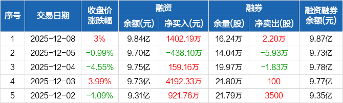 晶瑞电材:融资净买入1402.19万元,融资余额9.84亿元(12-08)
