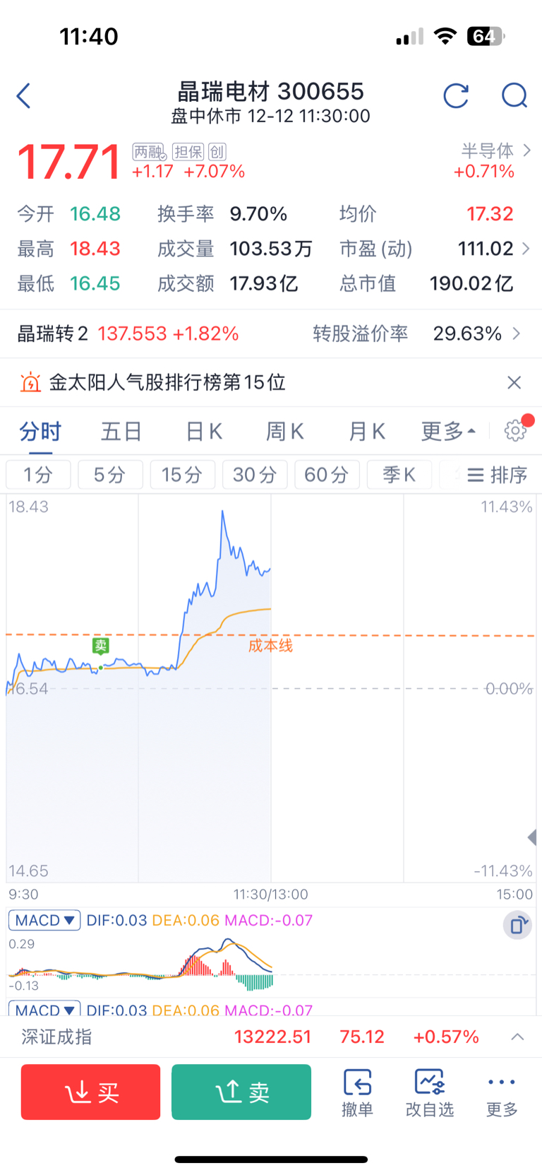 $晶瑞电材(SZ300655)$ 我去下午再买回来