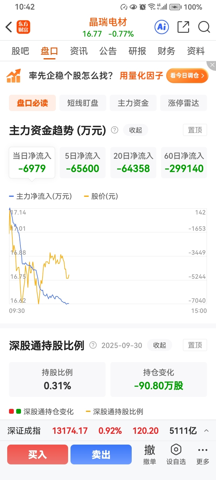 资金仍然在商业航天和卫星互联里面,晶瑞电材的资金一直都是大幅度净流出的。