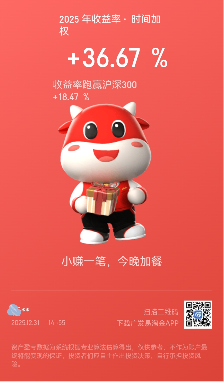 新的一年即将到来,回顾24年收益15.69%。25年收益36.67%。期待26年