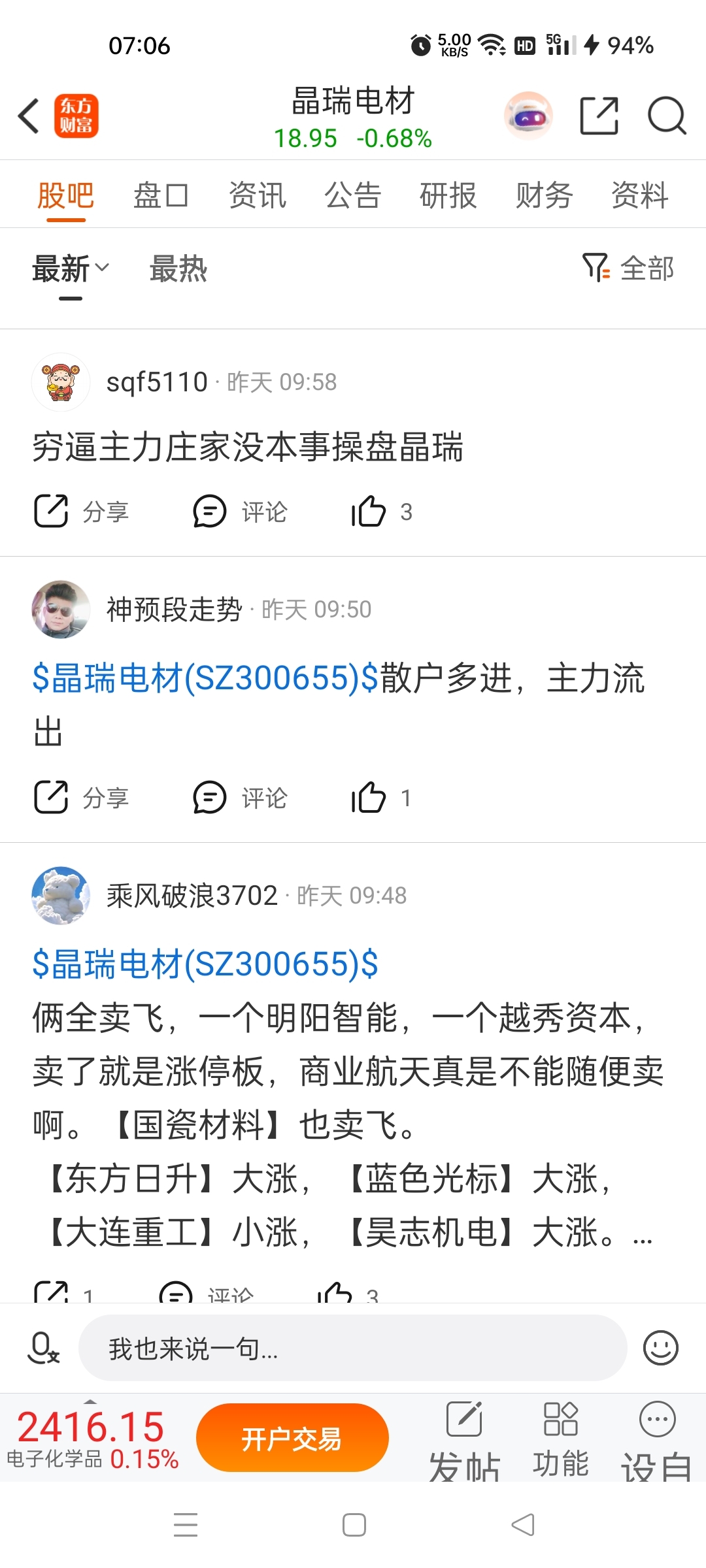 $晶瑞电材(SZ300655)$ 用事实说话,1月9日,劝不住的兄弟们,信了我,你没有进的兄弟是不是算赢,进了的没办法,请关注我,随时看我动态,保住你的本金