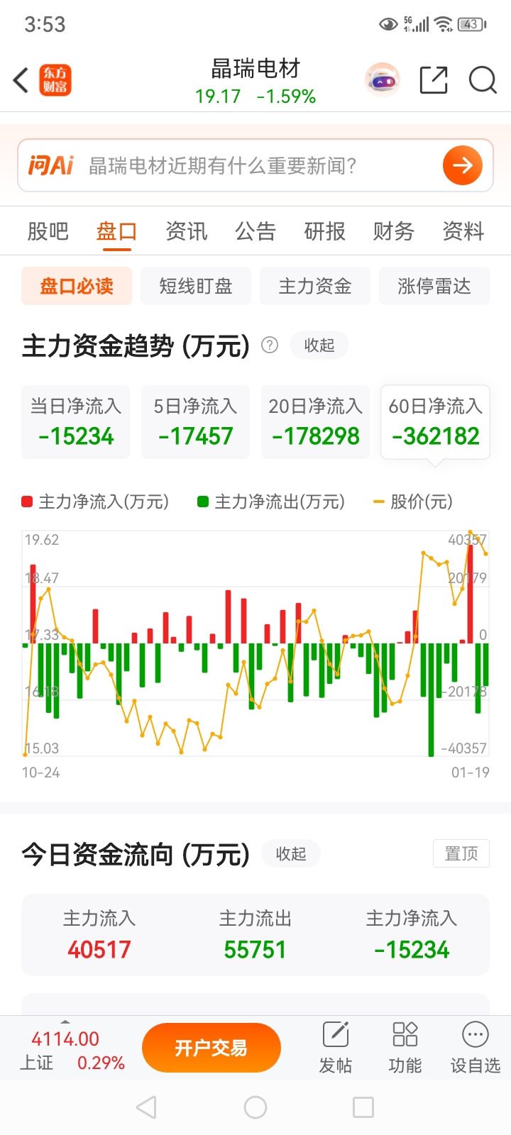 $晶瑞电材(SZ300655)$ 60天主力流出36亿,让散户站岗。