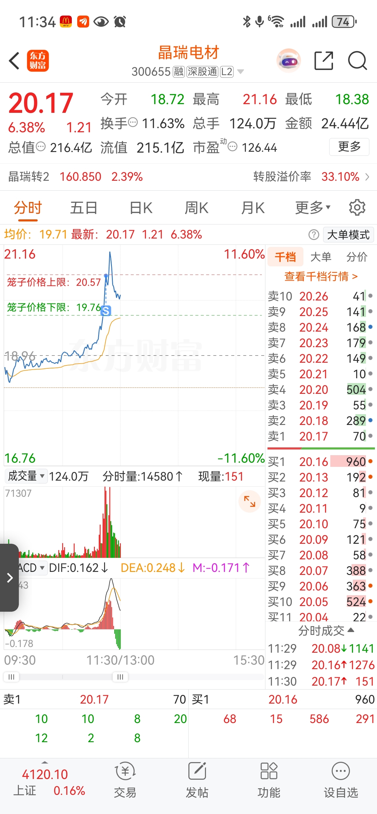 $晶瑞电材(SZ300655)$ 20.55卖了一半,留了一半的底仓