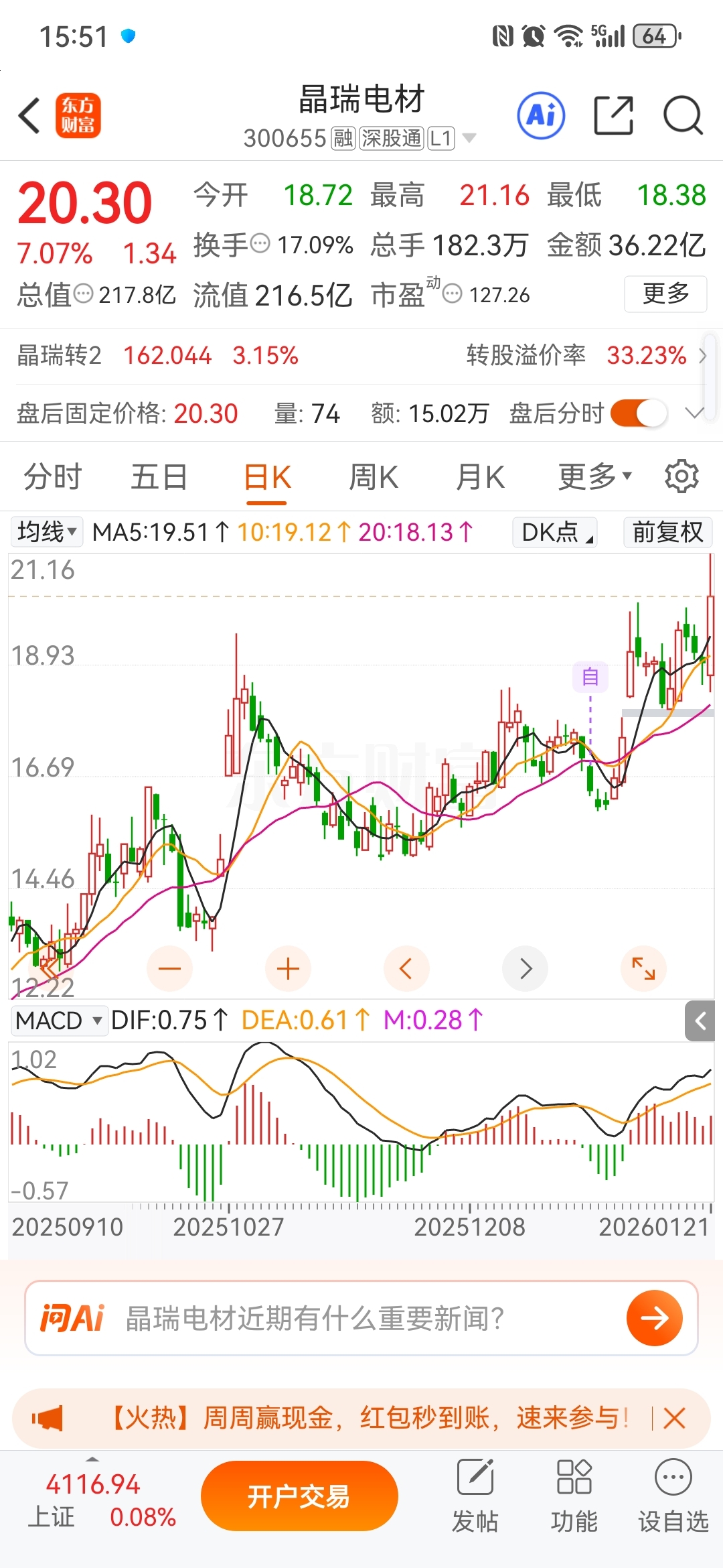 $晶瑞电材(SZ300655)$ 半个月再回头看,今天这个价就在山脚下
