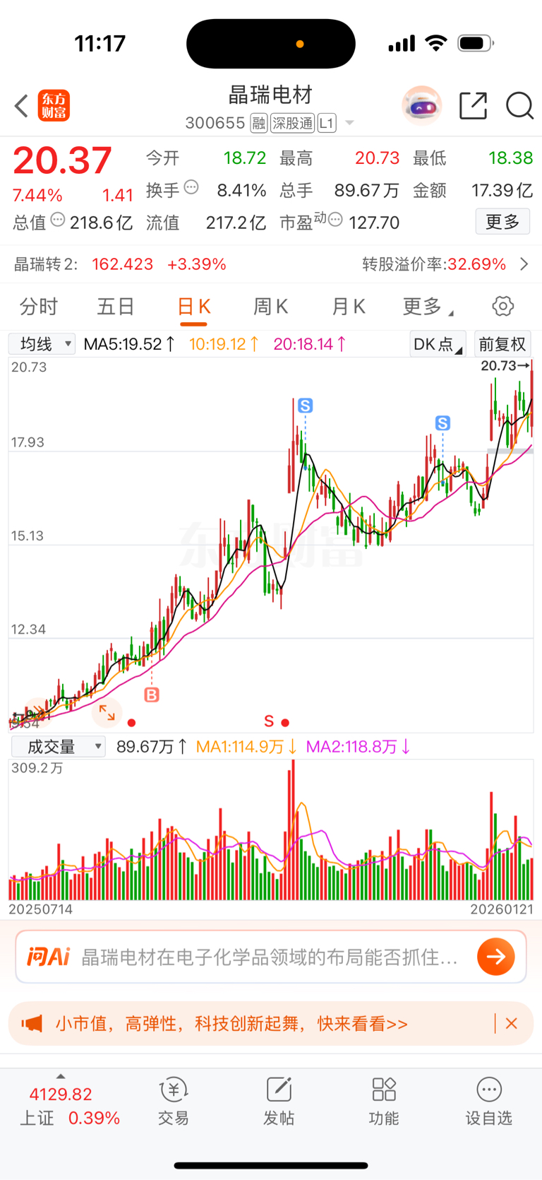 $晶瑞电材(SZ300655)$ 虽然没有卖在山顶,也知足了
