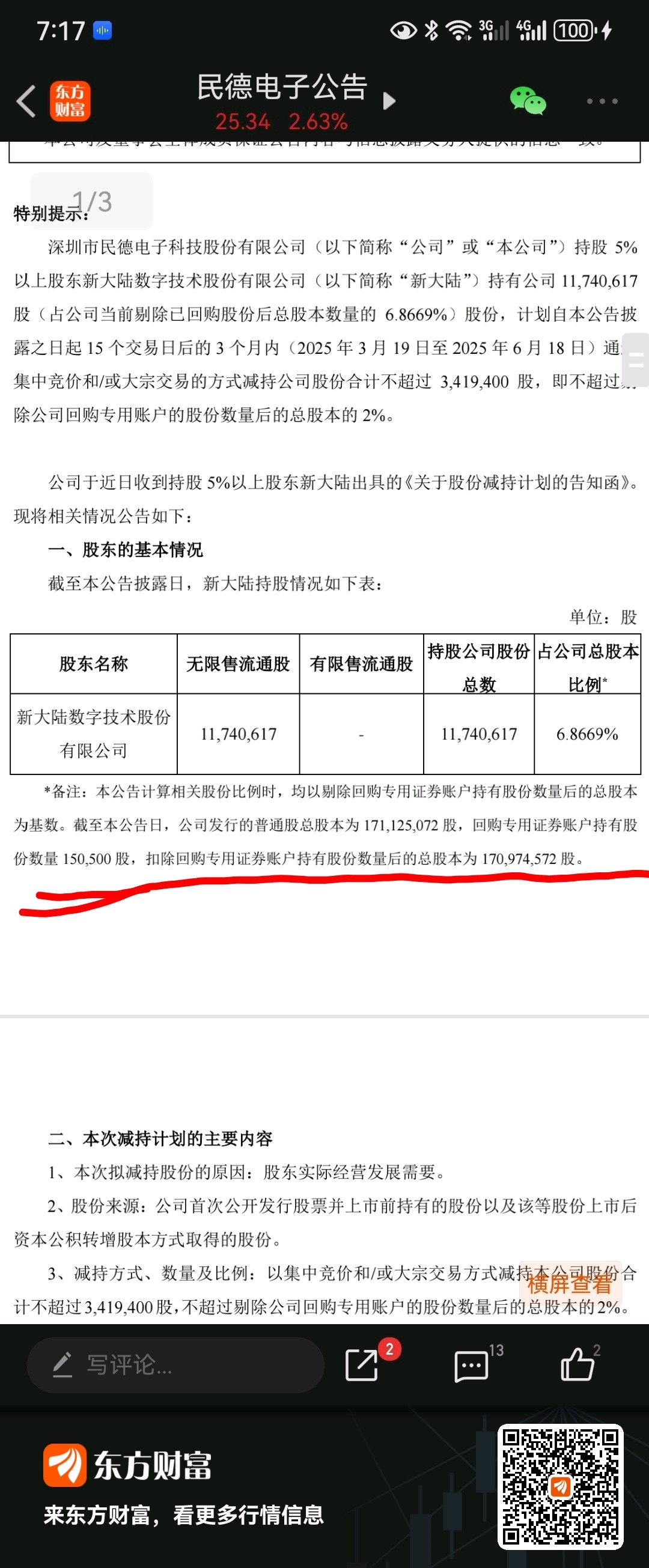 $民德电子(SZ300656)$ 从减持公告看,公司目前还是没有进行回购。剩下的时间不多了,很可能新大陆减持就是为了配合民德的回购。
