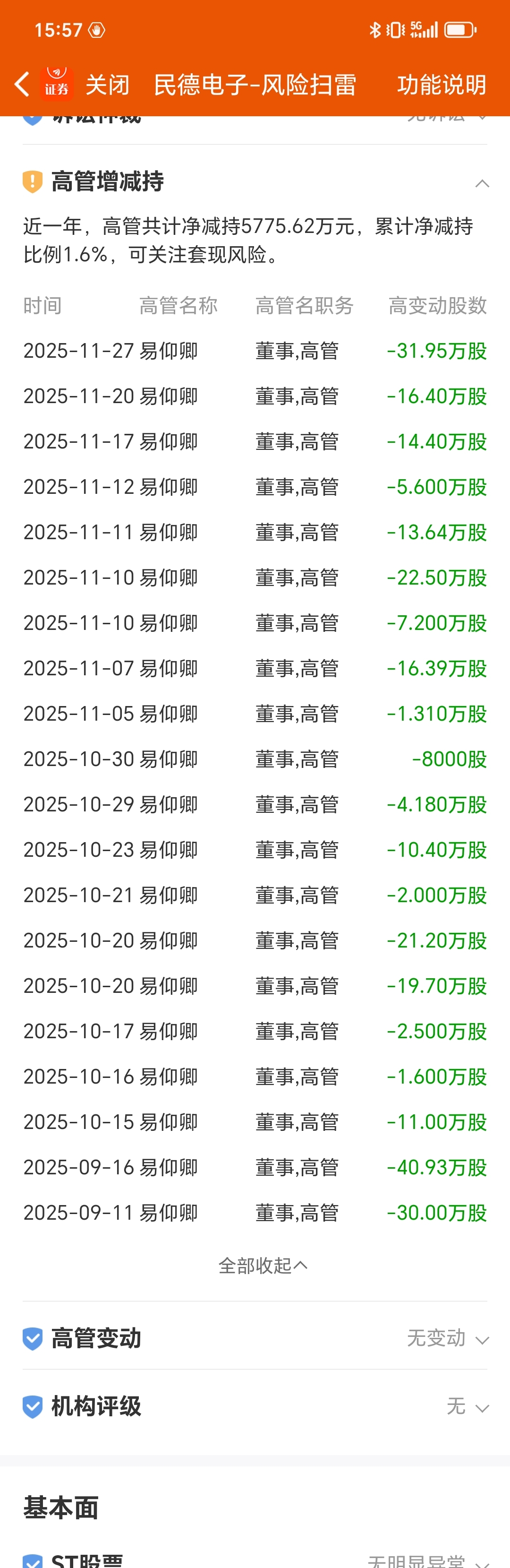 $民德电子(SZ300656)$ 全是这货的减持,还有一个新大陆没有减持完。