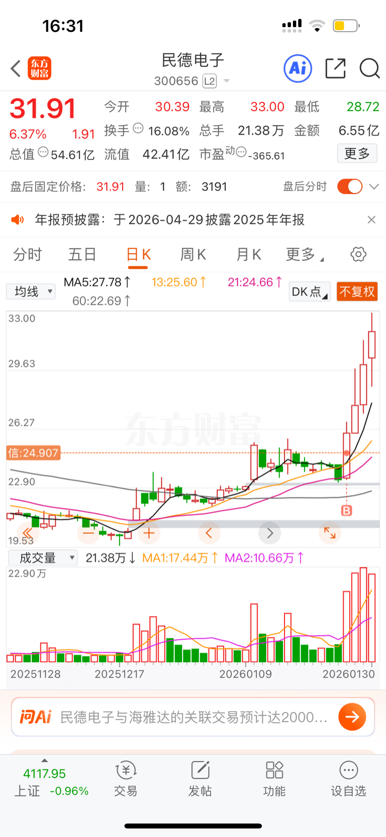 $民德电子(SZ300656)$ 看盘必会卖飞 别乱动
