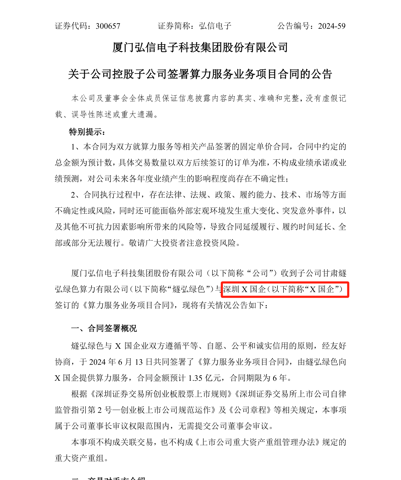 弘信电子 国资云 深圳X国企 为深圳信息基础投资发展有限公司 2024年6月公告